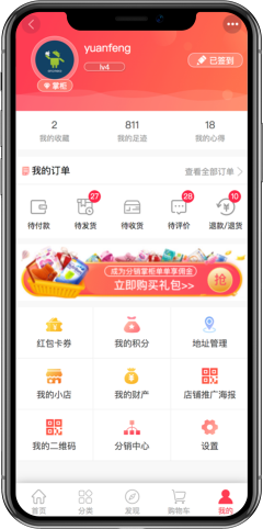 系统支持多级分销功能,以客推客,快速裂变,提升销量